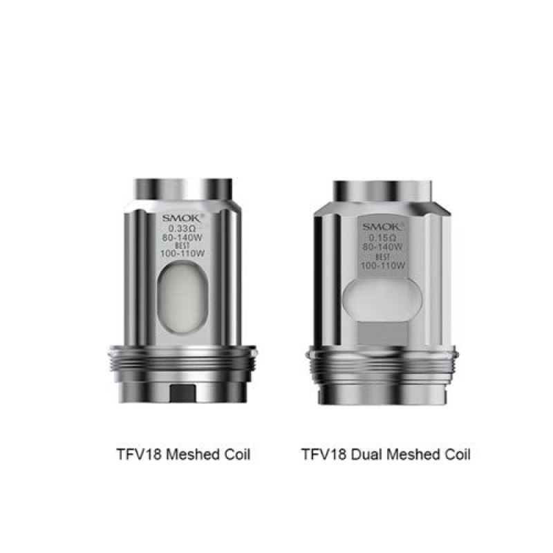 SMOK TFV18 Replacement Coils 3PK | SMOK Replacement CoilsSMOK is a leading manufacturer in the vape industry with a premium line of mods, tanks, kits and coils. Check out the SMOK TFV18 Replacement Coils, a set of mesh replacement coils offered in 0.33ohm Single Mesh and 0.15ohm Dual Mesh for maximum flavor.Specifications:TFV18 Mesh Coil Series0.33ohm TFV18 Meshed Coils - rated for 80-140W (Bes..